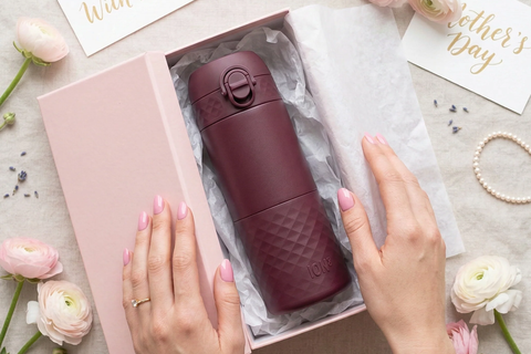 Choose between Recyclon, a food-safe plastic containing 15% bio-based material, or stainless steel bottles.