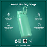 100% leak proof 400ml / 13oz stainless steel water bottles with a smooth flow for spill-free hydration and hygienic full-flip top cover for one handed use on-the-go.