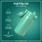 100% leak proof 400ml / 13oz stainless steel water bottles with a smooth flow for spill-free hydration and hygienic full-flip top cover for one handed use on-the-go.