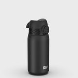 100% leak proof 400ml / 13oz stainless steel black water bottles with a smooth flow for spill-free hydration and hygienic full-flip top cover for one handed use on-the-go.
