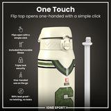 OneTouch bottles have an air vent for smooth, spill-free flow. The side spout allows for minimal tilt for perfect hydration. If you over-tilt, water may dribble from the vent.