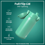 100% leak proof 400ml / 13oz stainless steel water bottles with a smooth flow for spill-free hydration and hygienic full-flip top cover for one handed use on-the-go.