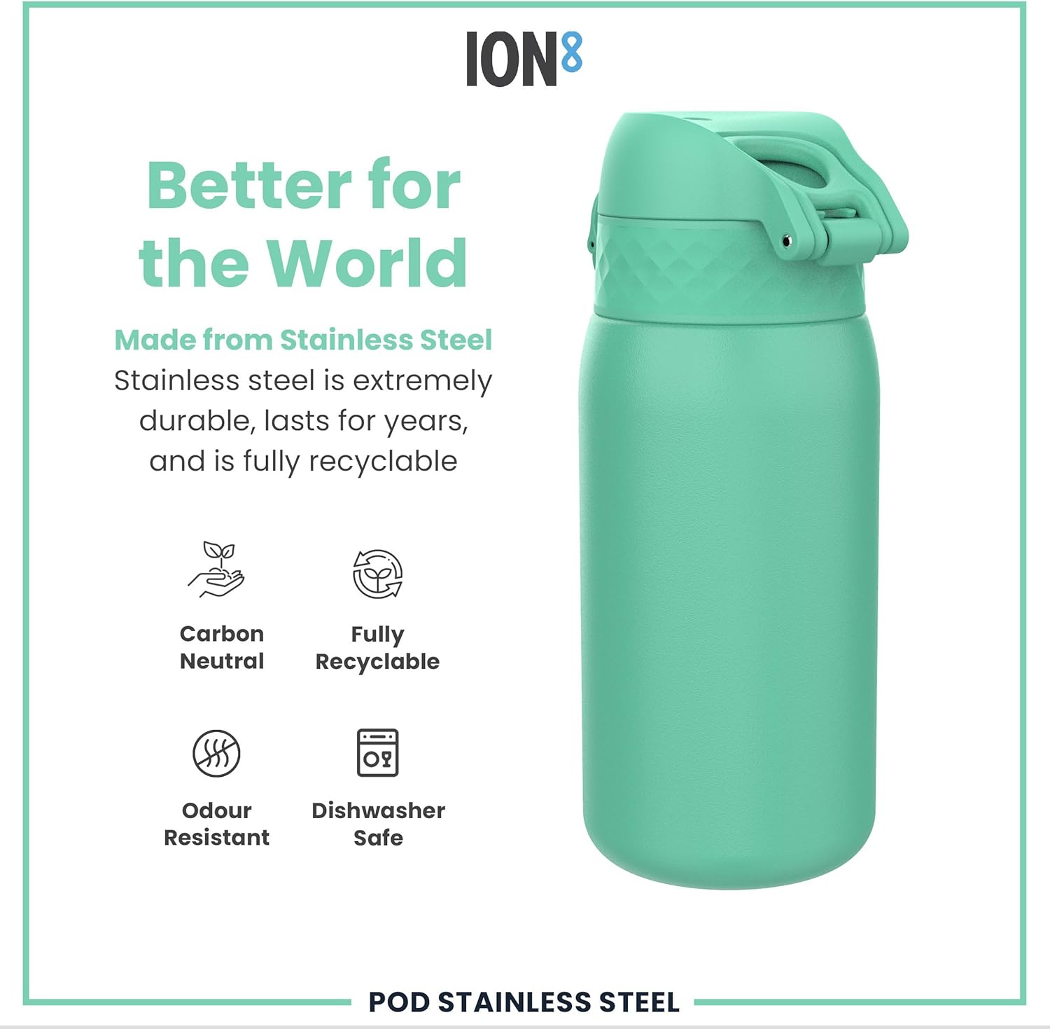 Made from lightweight stainless steel. Stainless steel is extremely durable, lasts for years, and is fully recyclable. This refillable and reusable drinks bottle is food safe, odour resistant, easy to hand wash, and keeps drinks fresh and full of flavour.