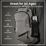 Small enough as a kids water bottle for their school lunch boxes or for smaller bags about town. The width of a soda can, it fits perfectly into all car cup holders and pockets on all backpacks.