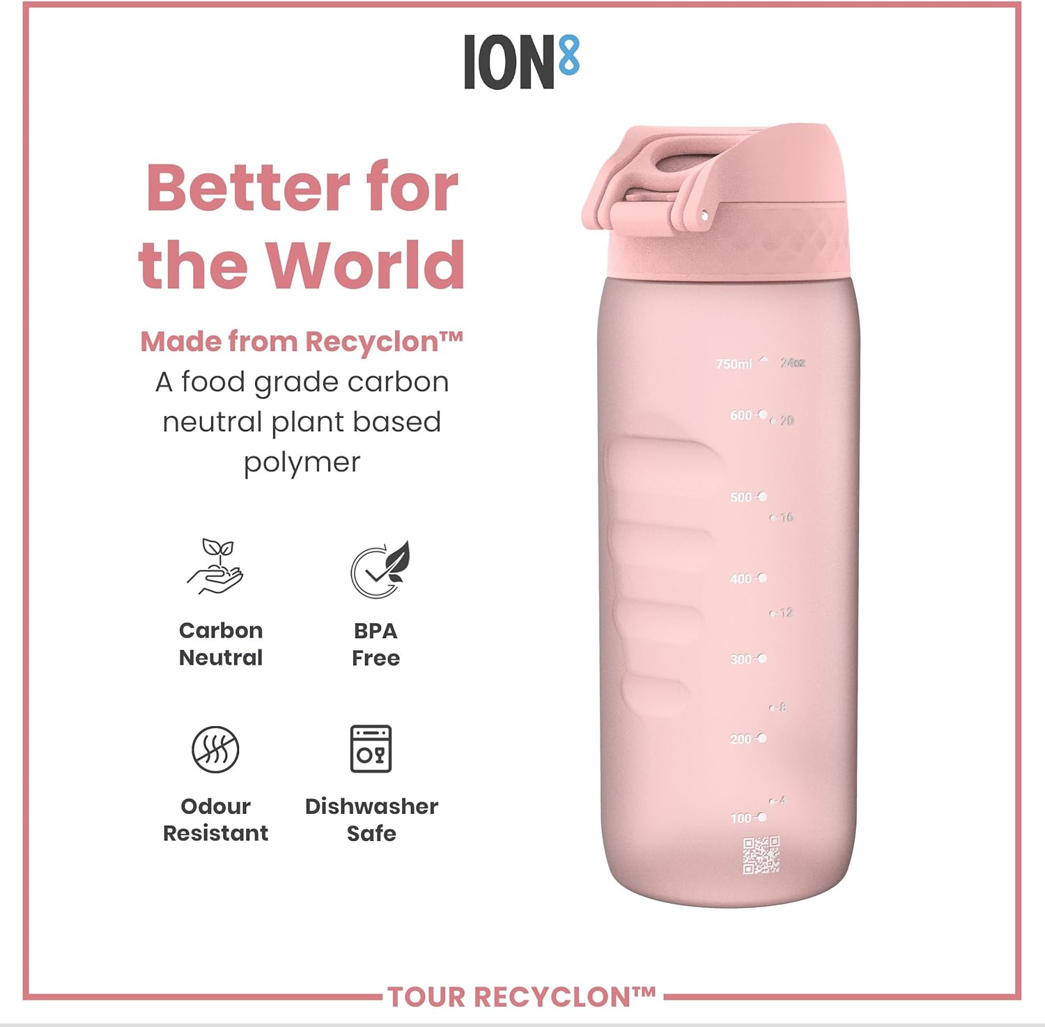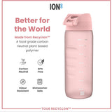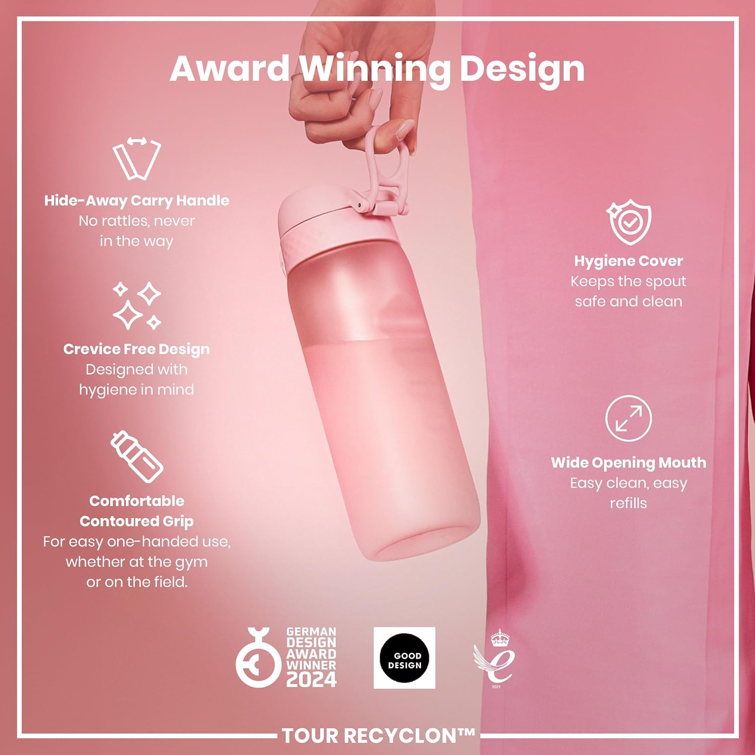 Made from Recyclon™, a transparent carbon neutral plastic partly made from plants. Reuse & refill responsibly. This pink water bottle is food safe, odour resistant, easy to wash, and keeps drinks fresh and full of flavour.